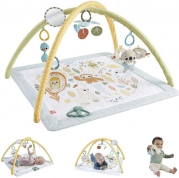 The practical stroller mobile in contrasting colors clips on effortlessly, so the fun continues beyond home. The plush koala is perfect for trips and its gentle chime is soothing. A safe BPA‑free teether, crinkly fabrics, and a rattle help develop the senses, while the mirror promotes self‑recognition. The mat cover is easy to care for and machine washable.