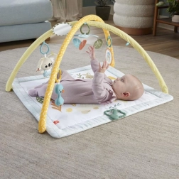 Create a safe, soft, and stimulating space for your little one. This play mat features a thoughtful design to support the development of vision, hearing, and fine motor skills. Thanks to the repositionable hanging toys, you can easily tailor stimulation to your child’s current needs and age—from back play to encouraging tummy time.