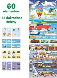The large, colorful puzzle has 60 pieces and shows a wide variety of vehicles that carry passengers and goods. Do you recognize them all? On the poster included with the puzzle you’ll find lots of fun facts about transport, and 32 picture tiles with elements to find in the illustration add even more creative fun. The set is an ideal educational gift idea for a curious preschooler, especially for little transport fans.