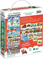 The This Is How Transport Works puzzle is a unique educational set for preschool children, especially if they love different vehicles. It consists of a 60-piece jigsaw, 32 matching picture tiles, and an educational poster. Let’s have fun! Pay attention to what moves on roads, sails on water, and flies in the air. Both familiar favorites and less obvious means of transport are great motivation to play. By assembling the puzzle, children develop observation skills, patience, and gain new knowledge in a fun way. Have fun!