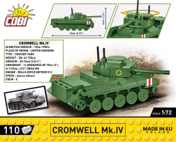 Discover the iconic British World War II tank in a mini scale! The COBI Cromwell Mk.IV building set in 1:72 scale offers 110 high-quality pieces, a movable turret, rolling wheels, and detailed British markings. A great choice for beginners and collectors looking for a compact and realistic model for a desk or shelf.