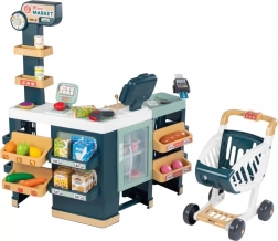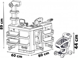 The fun and interactive SMOBY supermarket is perfect for children who want to dive into the world of shopping and selling. This play set includes everything you would expect in a real store, including a register with a light and sound scanner, a mechanical scale, and a credit card reader. A great addition is the shopping basket, which makes children's shopping games easier.