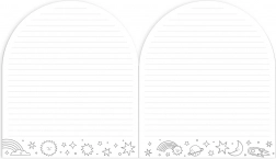 Dive into creativity on pages with lines and playful motifs of stars and rainbows.