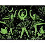 Assemble the stunning dance scene straight from Swan Lake with this puzzle that glows in the dark! It includes 100 pieces with elegant dancers transforming into fairies on a magical glade in the dark.