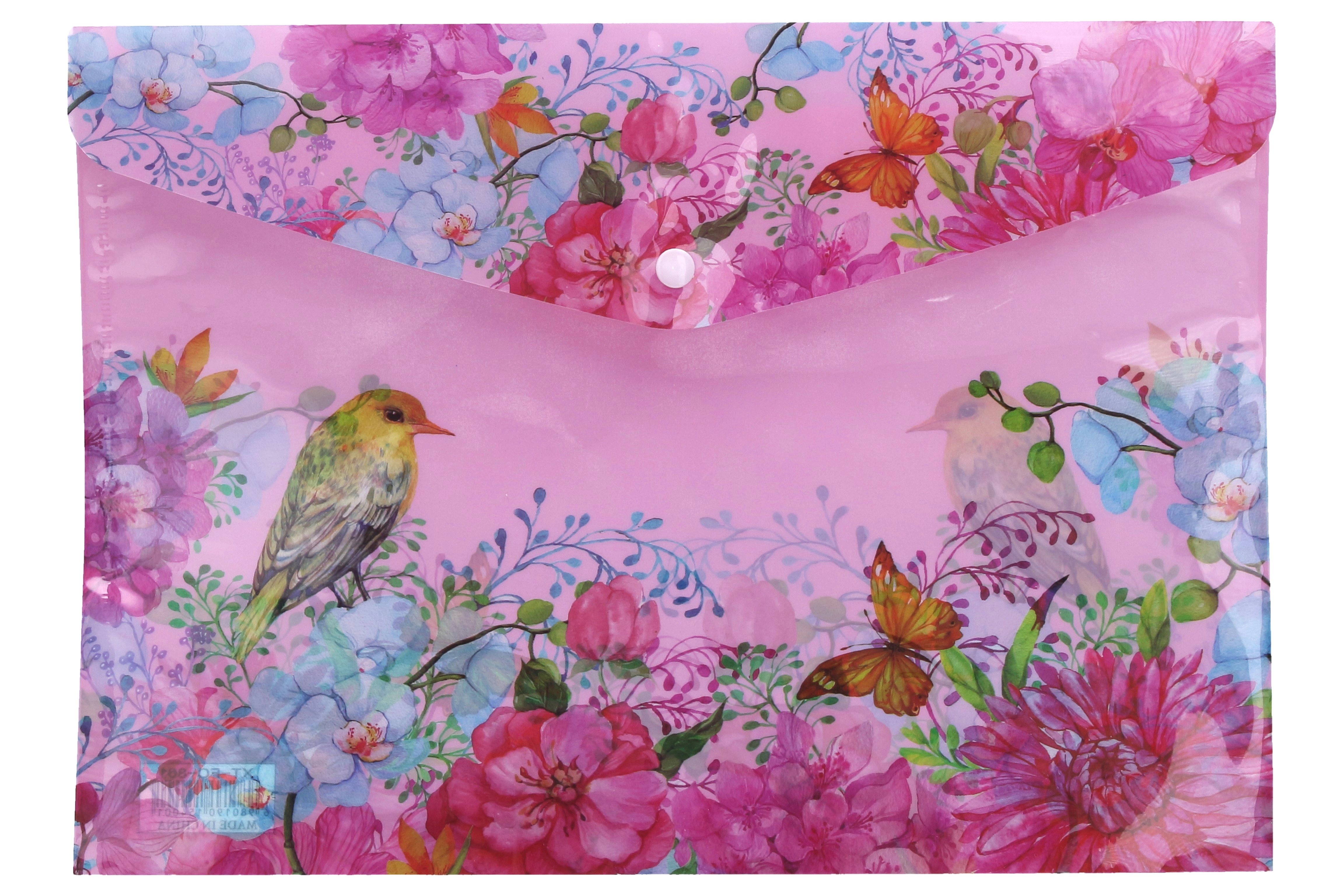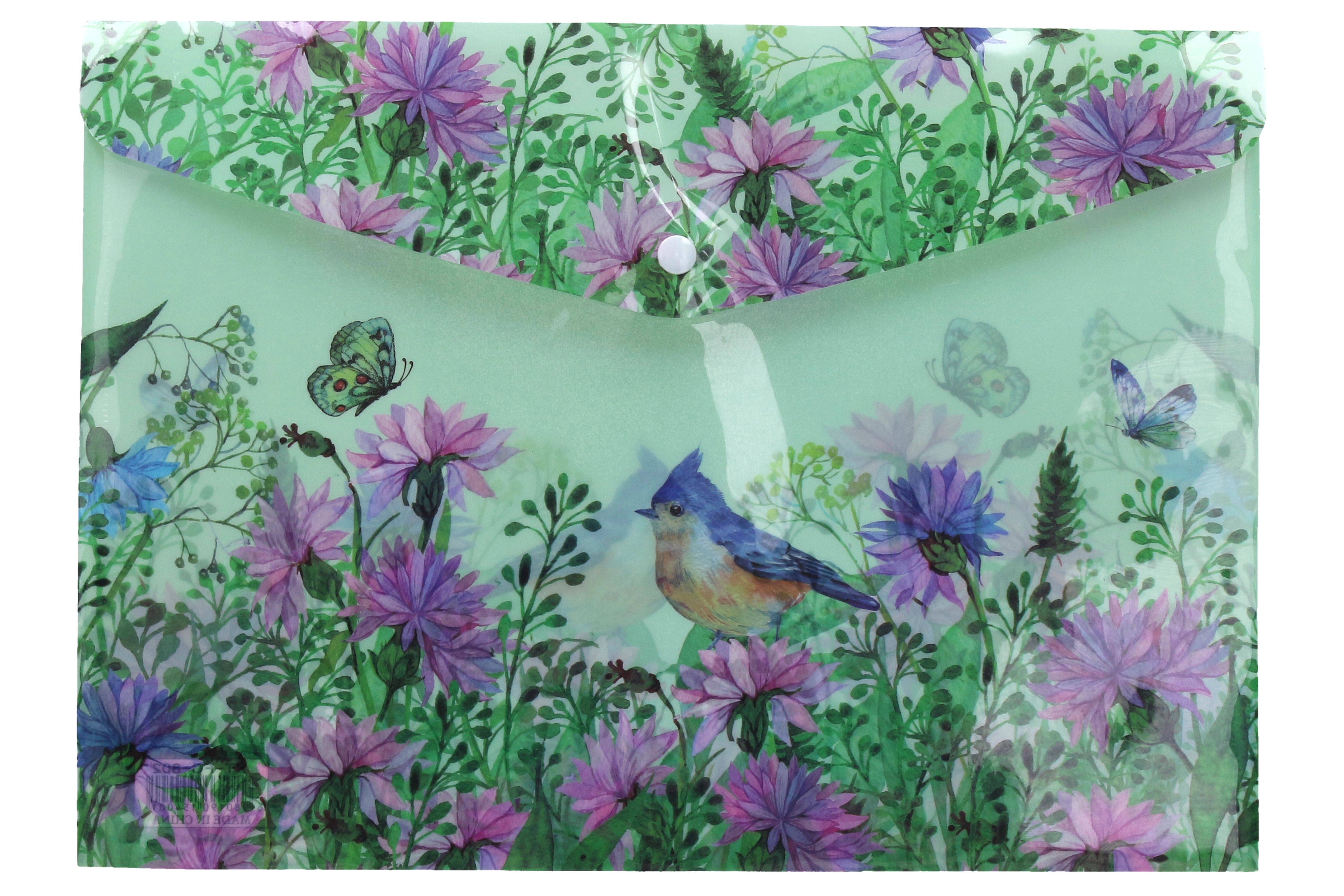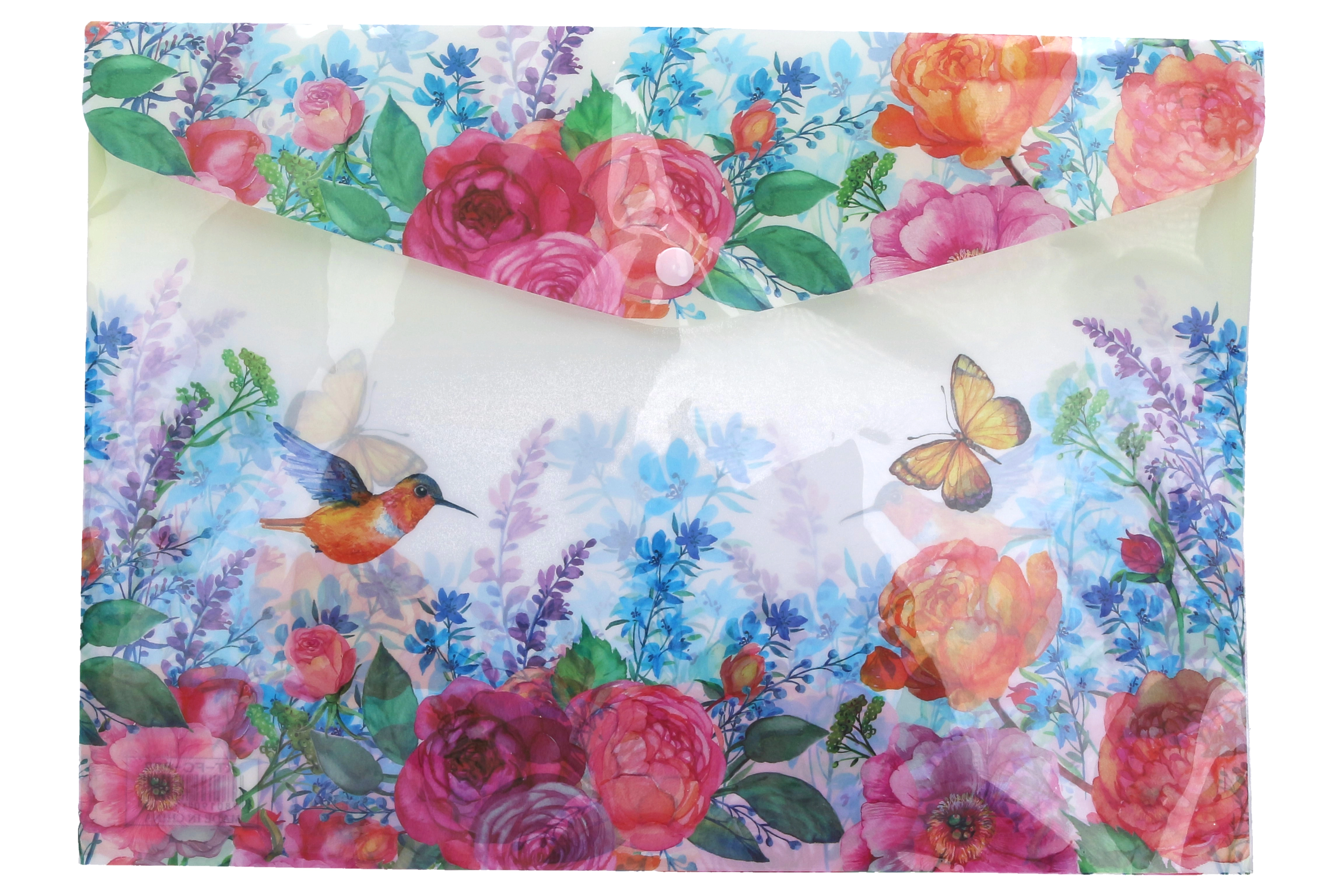 Keep your papers organized with this elegant 35 × 25 cm snap-button folder. The “Blossoms” floral motif gives your documents a fresh look, while the sturdy snap closure keeps them safely inside.