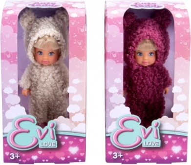 The adorable Evi Love doll in a soft teddy outfit will delight every child. She has a plush hooded jumpsuit with ears in cream or pink‑purple, blonde hair in a modern cut, and a height of 12 cm – ideal for little hands. Encourages imagination, nurturing, and role play. Delivered in a randomly selected variant, price per 1 piece, from 3 years.