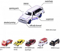 Each model offers opening parts, spring suspension, and precise plastic light clusters for an even more realistic look. Period Majorette logo prints tell the brand’s story and delight all fans of automotive history.