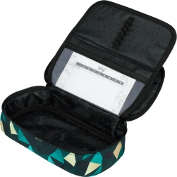 Pencil case with a flip-out inner divider, zip pocket, and holder for a timetable. Elegant and practical design.