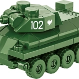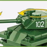 Small T-34/76 tank model made of COBI construction bricks is ideal for history enthusiasts and collectors. Thanks to the movable turret and wheels, it offers a realistic play experience.