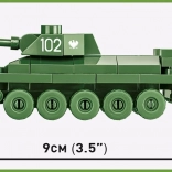 The mini model made of COBI construction bricks consists of 101 premium components and is built in 1:72 scale. When completed, it measures 9 cm in length and preserves all the important features of its historical counterpart. The sides of the turret feature inscriptions marking the Polish Army in the East and the number 102. The tank is equipped with movable wheels for easy rolling, and the turret rotates.