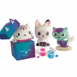 The set is designed for creating and painting plaster figures featuring the doll character Gabby. It sparks imagination.