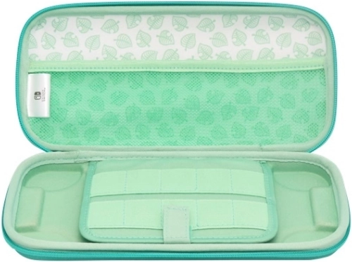 Give your console protection and style. This sturdy turquoise case with a licensed Animal Crossing design combines reliable protection with a practical layout. The hard shell resists impacts, while the softly padded interior prevents screen scratches.