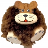 The wooden body and plush details create a pleasant blend of natural materials that is both durable and decorative.
