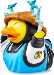 This collectible duck figure represents Raiden from the cult game Mortal Kombat. Made from high-quality plastic, it measures approximately 9 cm. It is delivered in an attractive paper box with a window, making it ideal for display. The duck is perfect as a decorative element not only on a shelf but also as an original addition to your collection.