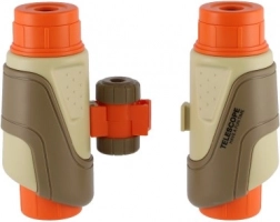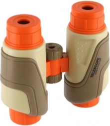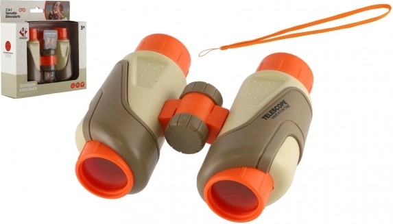 These kids' binoculars by Outdoor Explorer enchant young adventurers with their ergonomic design and rotating zoom. Made from plastic, they are durable and lightweight to wear. The playful combination of beige, orange, and brown emphasizes their child-friendly character.