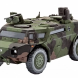 The model faithfully captures the vehicle's shape and proportions, including the camouflage scheme. Wheel, panel, and armament details support an authentic look of the finished model.