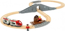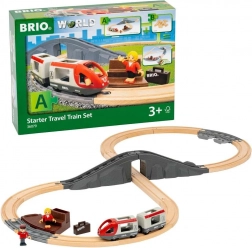 Complete starter train set for a first adventure in the world of BRIO. This 22-piece set includes wooden tracks in a figure-eight with a bridge and tunnel, a platform for figures, and a passenger train ready to roll on BRIO’s iconic wooden rails.