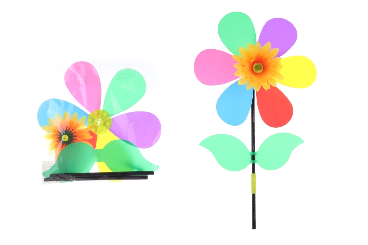Brighten up your garden, balcony, or kids' room with a colorful flower-shaped wind spinner. Thanks to the plastic stick, it easily inserts into soil or flowerpots, and its dimensions create a great visual effect. Ideal as a playful decoration and for children aged 3 and up. Lightweight, durable, and ready to use immediately.
