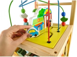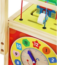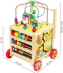 The educational cube contains various activities on each side, supporting the development of your child's creativity and skills.