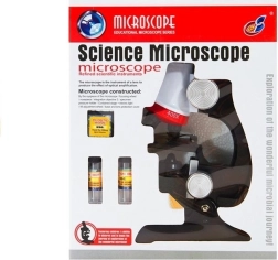 Discover the new educational set that introduces your child to the world of science and nature. The microscope comes with everything needed to observe the micro world. Thanks to multiple lenses, it offers different magnification levels: 100x, 400x, and 1200x. The set includes a microscope, tweezers, a prepared slide, four blank slides for making specimens, two test tubes, a storage box, and stickers.
