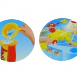 Flowing water spins the yellow mill and creates a small waterfall. Children discover cause-and-effect principles and practice fine motor skills while pouring water.