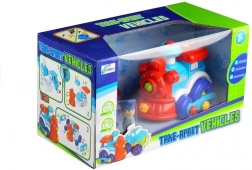 Colorful train with movable wheels allows children playful rides on different surfaces. Besides the train, the set also includes figures and tools like a wrench and screwdriver, which fit perfectly in children's hands and are adapted for easy use. The toy expands the possibilities of play according to children's imagination.