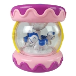The drum features an inner carousel with little horses, providing an interactive visual experience for children.