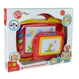 2 magnetic boards (large and small), magnetic pen, 4 stamps, erasing slider