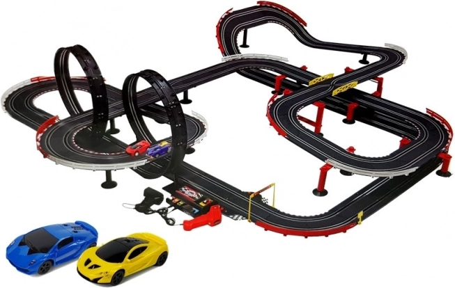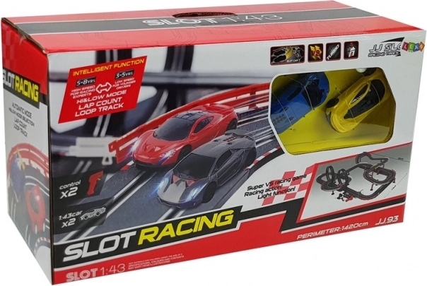 Meet the perfect racing track for young racers! This spectacular Slot-Car set is equipped with a special base with guide tracks on which the ready-to-race cars move.