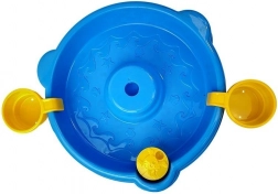 A round basin with undersea reliefs and cup holders creates the ideal setting for catching fish and sensory water play.