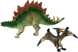 The Stegosaurus and Pteranodon figures are crafted with attention to detail, making them realistic models suitable for educational and play purposes.