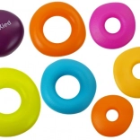The set includes seven rings of varying sizes and textures, which are not always perfectly round. Touching and playing with these rings teaches children to perceive differences and practice their motor skills.