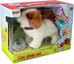 The set includes a bottle, brush, and food bowl, allowing for realistic play and pet care.