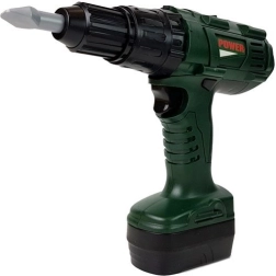 Ergonomically shaped for small hands, makes real drill sounds, and supports hand–eye coordination. Power: 2× AA 1.5 V.