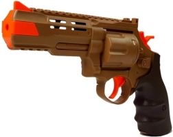 This interactive dinosaur will delight all fans of prehistory and action stories. After switching on it moves forward on its own, you hear footsteps and a terrifying roar, and the eyes light up red. Pull the trigger on the blaster to start the battle — each hit triggers light and sound effects; on the ninth hit the T-rex topples over and plays a defeat effect.