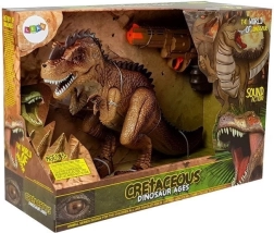After switching on, the dinosaur moves forward on its own, its footsteps and roar sound like in a movie, and the eyes light up red for maximum play atmosphere.