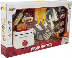 In the box you’ll find the toaster, plates, cutlery, a rolling pin, and 4 tubs of modeling clay in different colors. Suitable for children aged 3+, complies with CE and EN 71 standards, and comes in a gift window box—ready to give.