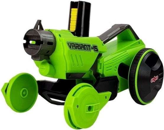 The 2.4 GHz control is stable and resistant to interference, so driving is smooth and precise. The trigger handles forward and reverse movement, while the steering wheel takes care of turning. Fire by pressing the black button on the handle – both the shot power and driving speed will pleasantly surprise you.