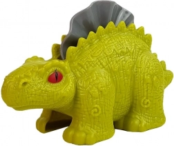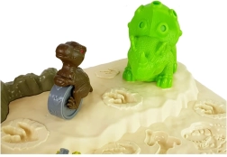 The table offers a volcano with glowing lava for the next level of play. The set includes three eggs that hide a small dinosaur, and three larger prehistoric animals for precise carving and stamping motifs. This develops fine motor skills and visual coordination in children.