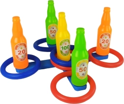 This colorful game for kids aged 3+ brings quick fun and healthy competition. The goal is simple: toss rings onto bottles with different point values and score as many points as possible. Thanks to the bold colors and numbers, kids quickly grasp the rules and can jump straight into the game.