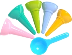 - 5 cones + scoop for realistic serving of sand 'ice cream'