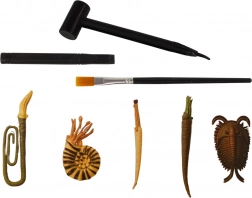 - 1 ancient creature (random species), chisel, brush, hammer, plaster, dinosaur-shaped sponge