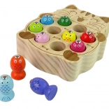This classic and interactive game is designed to provide a lot of fun while helping children develop important skills such as hand-eye coordination. The wooden cat-shaped base contains 10 colorful fish that players catch with two rods with magnetic ends. The game promotes healthy competitiveness.