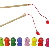 Two rods with magnetic ends and 10 colorful fish create a fun and competitive atmosphere.
