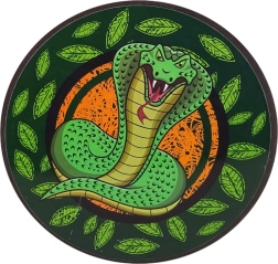 • Bold design: green snake on the shield and sword