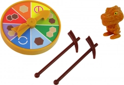 Spin the arrow on the wheel and it will tell you which color stone to knock out. Can you keep the dinosaur in the game while others lose ground?