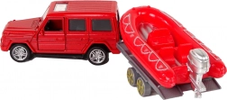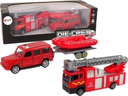 The inflatable boat on a trailer allows connection to selected vehicles for different types of rescue. The set is complemented by educational cards with different types of firefighting vehicles.