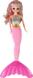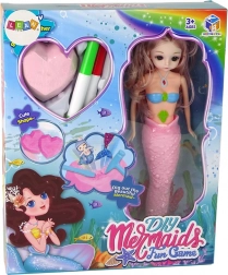 Creative toy for kids: a pink mermaid with long hair that can be combed and recolored. Includes two heart-shaped “stones” with surprises, excavation tools, and four colored markers. Combines crafting, painting, and treasure discovery in one fun set.