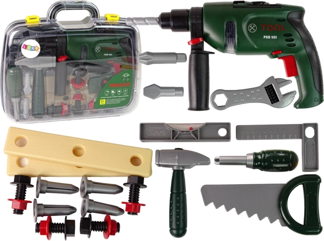 Give your kids a fun experience with our children's tool set. It includes a realistic plastic drill with a rotating function and authentic sound, delighting every little DIY enthusiast. All tools and accessories are stored in a practical transparent plastic toolbox, which makes storage and transport easy.