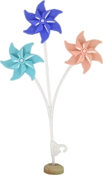 Three colorful pinwheels enliven any outdoor or indoor adventure. Kids can create scenes of wind and movement to develop their imagination.